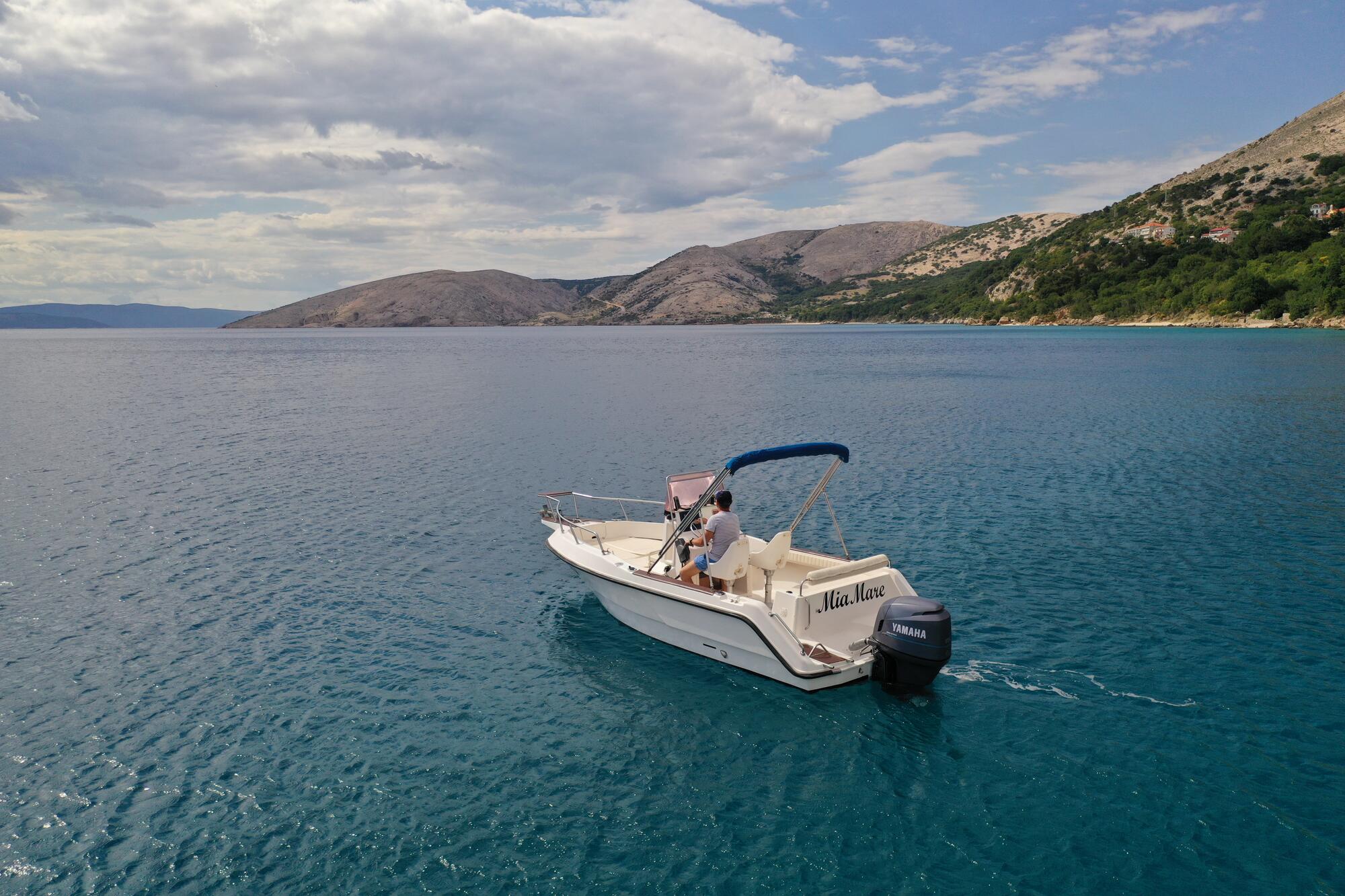 Our motorboat is moored in Stara Baška harbour and it is equipped with a Yamaha 115 HP engine and a 160 liter fuel tank. The elan 20 cc can accomodate 8 persons. This boat is perfect for a day cruising around the island of Krk. We are located in Stara Baška, at the south part of the island of Krk. Krk is the biggest island in Croatia and it's very close to the islands of Rab, Prvić, Goli, Grgur and Cres. We can recommend places for you to visit. Also Golden beach and Oprna bay are very close to Stara Baška. This will surely make for a great Adriatic holiday experience!